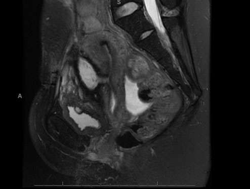 Concern was raised that menstruation will lead to ongoing reaccumulation of the collection via the uterine-peritoneal fistula. As such, medical management with gonadotropin releasing hormone (GnRH) agonist in the form of a 10.8 mg Goserelin implant and oral antibiotics was commenced and MRI follow-up was recommended. Surgical intervention was discussed but felt to carry high risk of recurrence. Her follow-up MRI four months later revealed complete interval closure of the caesarean scar dehiscence with resolution of the pelvic hematoma. The patient was asymptomatic and discharged to primary care follow-up with advice to have a caesarean section in future deliveries due to an increased risk of uterine rupture.