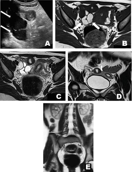 3D US has been used in the characterization of Mullerian anomalies with the advantages of safety (i.e., without ionizing radiation) and wide accessibility. 3D US depicts of the fundal contour of the uterus to advantage, similar to MRI [32]. With both high sensitivity and specificity for Mullerian anomalies [32],[33], 3D US has been used successfully for diagnosis of a rudimentary horn pregnancy [34]. Although it is usually concordant with MRI for fundal contour, 3D US is less accurate than MRI for studying the remainder of the uterus [33]. Moreover, the non-cavitary rudimentary horn may be overlooked on US [20]. MRI, the gold standard in diagnosing Mullerian anomalies, is used for problem solving after inconclusive US [4].