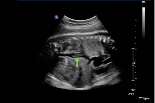 While Factor V Leiden (FVL) is a common thrombophilia for pregnant patients, diagnosis and management of a fetal thrombosis during pregnancy is rare. Despite the increased risk of venous thromboembolism (VTE) in the pregnant patient due to increased clotting potential in normal pregnancy as well as increased risk for patients with FVL, it is unclear if inherited thrombophilias cause adverse pregnancy outcomes such as fetal loss, fetal growth restriction, preeclampsia, or placental abruption [1]. Cases of fetal thrombosis diagnosed in the prenatal period are limited and the risk of a VTE in the fetus is undetermined. When neonates are diagnosed with a thrombus, it is unknown if these clots began developing in utero. While neonates have been described as hypercoagulable, especially in stressful conditions, the coagulation system in the fetus is less well known, but it is believed that it develops toward that of a healthy newborn [2],[3].