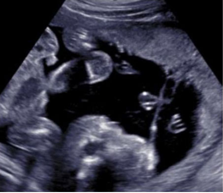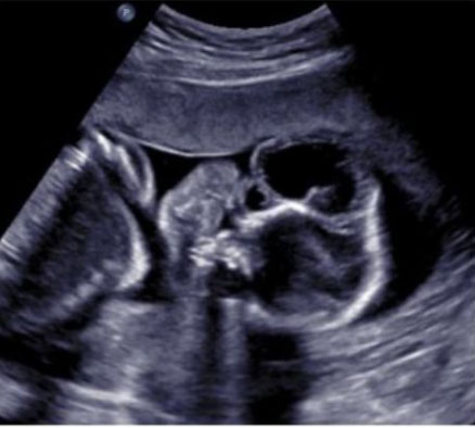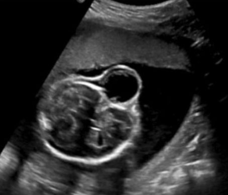 A 34-year-old gravida 1 para 0 with uncomplicated pregnancy presented for routine anatomical survey at 21 weeks 5 days based on last menstrual period. This patient also had no history of uterine procedures, familial birth defects, or paternal consanguinity.