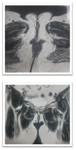 A vulvar biopsy was performed at this level, showing a well-differentiated verrucous carcinoma. The pelvic ultrasound was without abnormality, a pelvic and inguinal magnetic resonance image (MRI) was done highlighting a tissue thickening of the right labia minora with an intermediate signal on T2, in hypersignal intermediate apparent diffusion coefficient (ADC) diffusion, enhanced after injection of the phosphatidyl choline (PDC), measuring 20×17×6 mm. Laterally this process comes into contact with the large homolateral lip with loss of the fibrous border of separation. It respects the ureteral meatus (Figure 2).