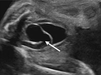 Repeat ultrasound imaging in 4–8 weeks to look for progression. Postnatal ultrasound may also be helpful in establishing prognosis. Because of its association with pyelectasis, look for other soft markers of aneuploidy. To rule out reflux, consider a voiding cystourethrogram postnatally [18] (Figure 6).