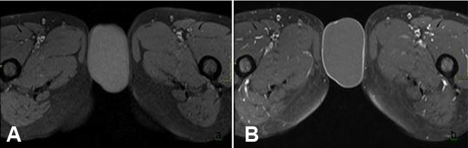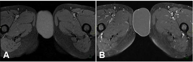 Despite the characteristic imaging findings of vulvar epidermoid cysts (as outlined in Table 1), the diagnosis of epidermoid cyst can only be confirmed on histopathology—as documented in our case, this includes the demonstration of characteristic features, such as a stratified squamous epithelial lining of the cyst wall and often, a central keratinous debris. While it is rare for epidermoid cysts to undergo malignant transformation, it is certainly possible. It is estimated that around 1% of epidermoid cysts undergo malignant transformation, giving rise to basal or squamous cell carcinomas [9],[15].