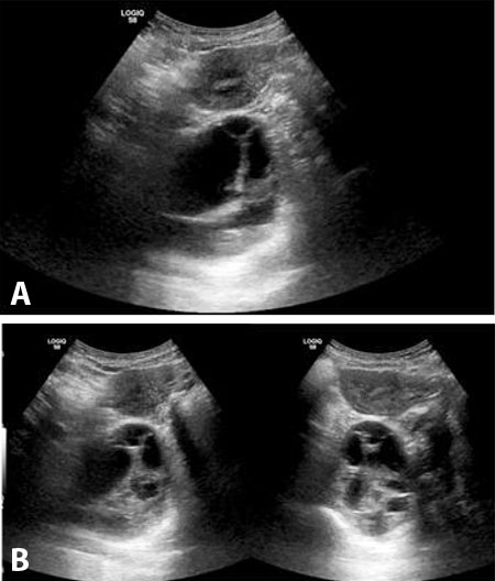 The first ultrasound examination revealed anhydramnios. The kidneys appeared normal and well-differentiated, the bladder was not visualized, and the stomach appeared small. On the same day, a cordocentesis was performed, showing elevated β2-microglobulin (6.91 mg/L), normal cystatin C (0.62 mg/L), and a normal molecular karyotype.
