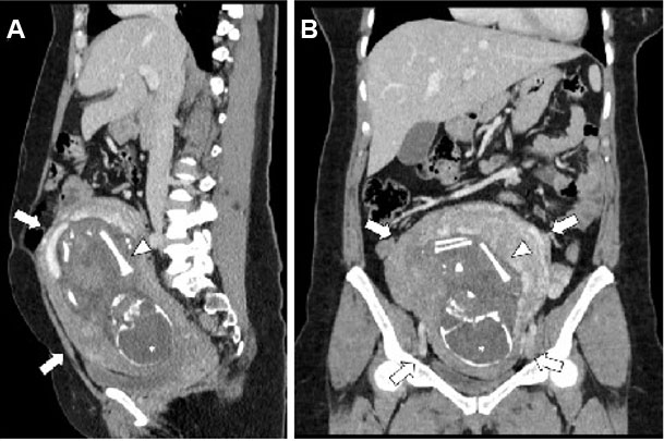 After one month, we made a staging computed tomography (CT) scan for a palpable pelvic mass, which incidentally revealed a pregnancy on April 3, 2024. The patient was referred to a prenatal diagnostic unit, where gestational age was estimated at 25 weeks and 4 days, with an estimated due date of July 13, 2024.